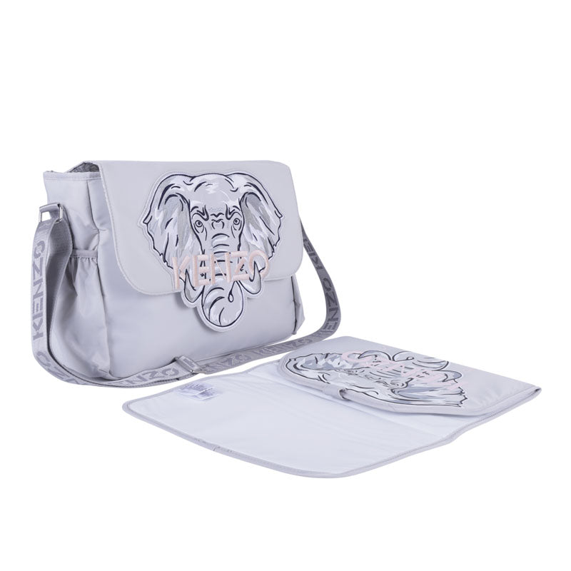 Embroidered-logo changing bag from KENZO KIDS featuring electric blue, embroidered logo to the front, adjustable shoulder strap, foldover top, two side pouch pockets, main compartment, internal slip pocket and changing mat.