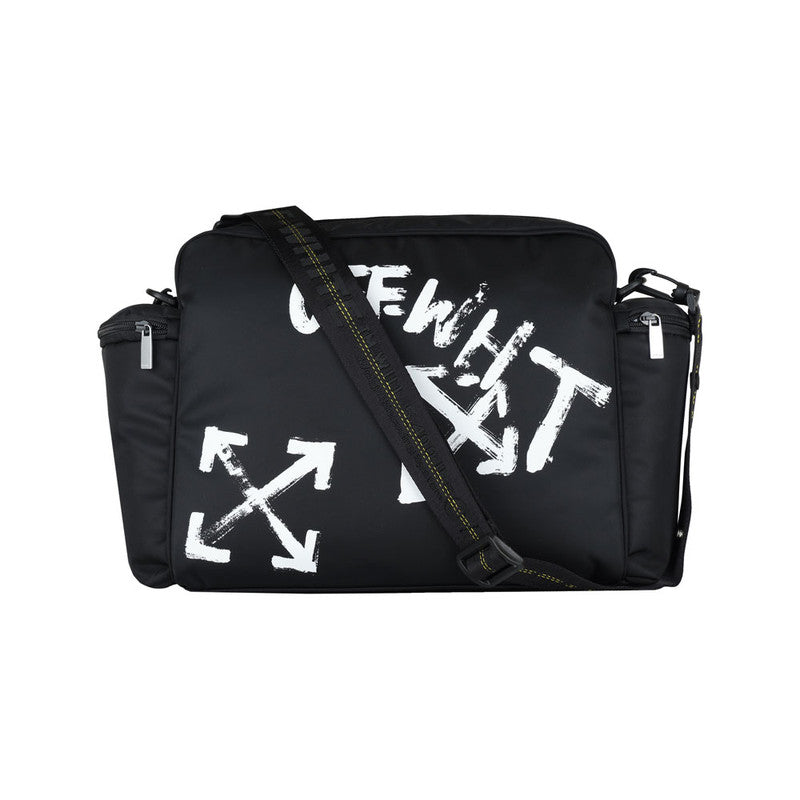 Off-White Kids showcases its off-beat aesthetic with this shoulder bag, boasting the iconic logo and Arrows print in a bold graffiti style.