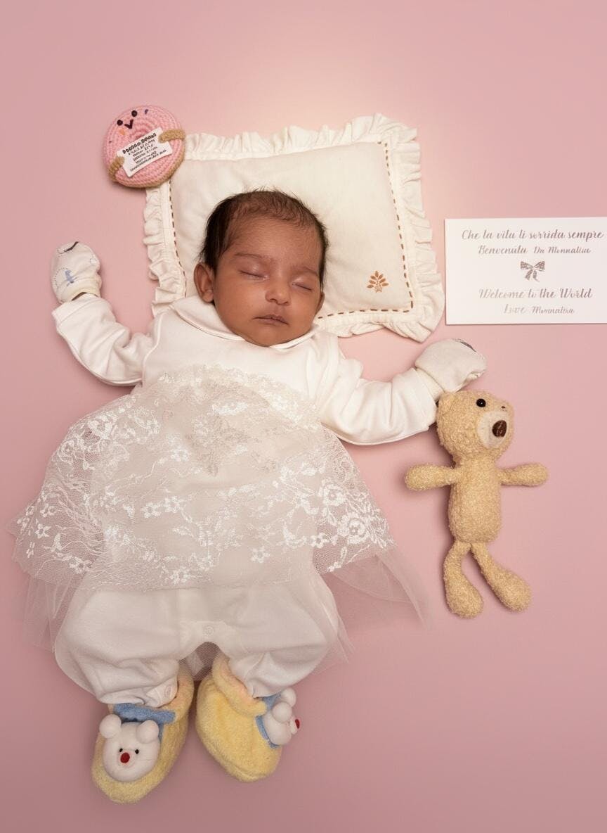 The perfect jumpsuit for any special occasion in your newborn's wardrobe. Comfortable to wear thanks to the front opening, it's perfect for ceremonies or as a gift. Pair with a warm cardigan for an even more elegant touch.