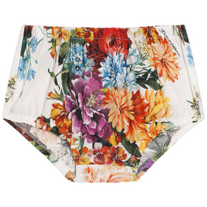 A charming off-white dress by luxury Italian label Dolce & Gabbana, made in smooth cotton poplin. It is patterned in a beautiful and colourful floral print, incorporating the brand's script logo for a subtle designer touch.