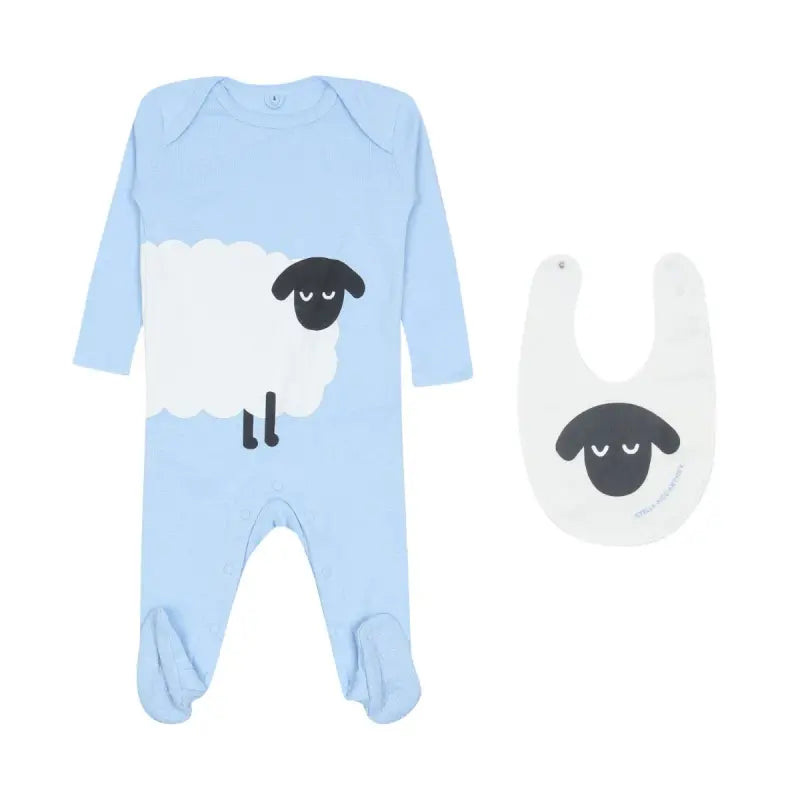 Stella McCartney sheep-print cotton babygrow set light blue/white cotton sheep graphic print to the front