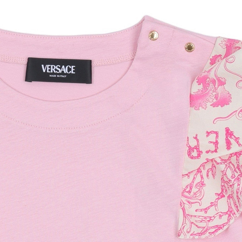 A cotton-jersey T-shirt featuring contrasting cotton poplin ruffled sleeves in the Underwater Barocco print. Snap-buttons on the shoulder allow for easy removal.