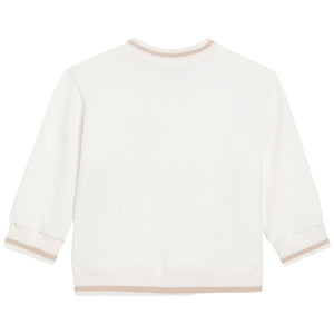 This ivory cotton sweatshirt by Dolce & Gabbana has a super cute leopard appliqué on the front with 3D ears and the brand's DG logo below. Made in soft, comfortable jersey, it has striped ribbed trims for extra cosiness and useful poppers on one shoulder for easy dressing.