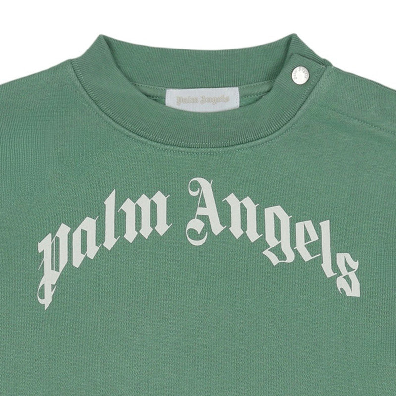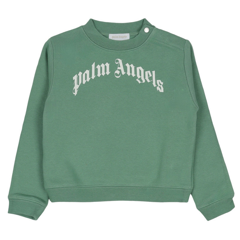 Soft cotton crewneck sweatshirt featuring a bold curved logo design, capturing a blend of streetwise cool and elevated style.