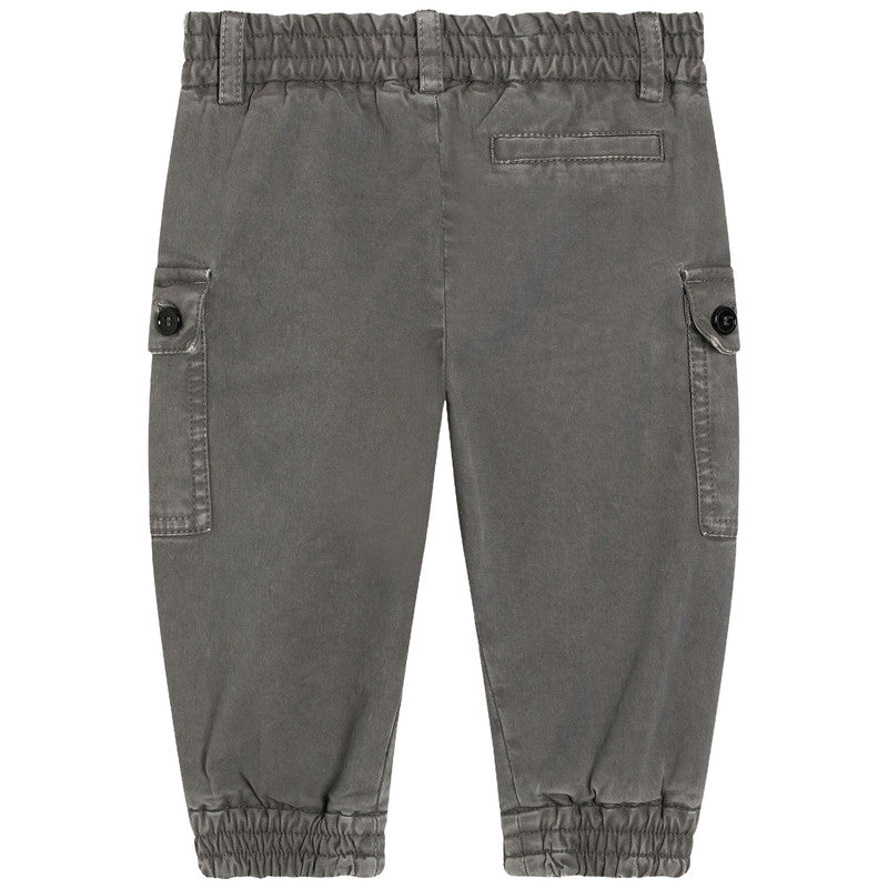 These Dolce & Gabbana cotton pants feature a cool washed grey finish and classic cargo pockets. They include an elasticated waist and cuffs, plus a fun 'Adventure Expert' graphic.