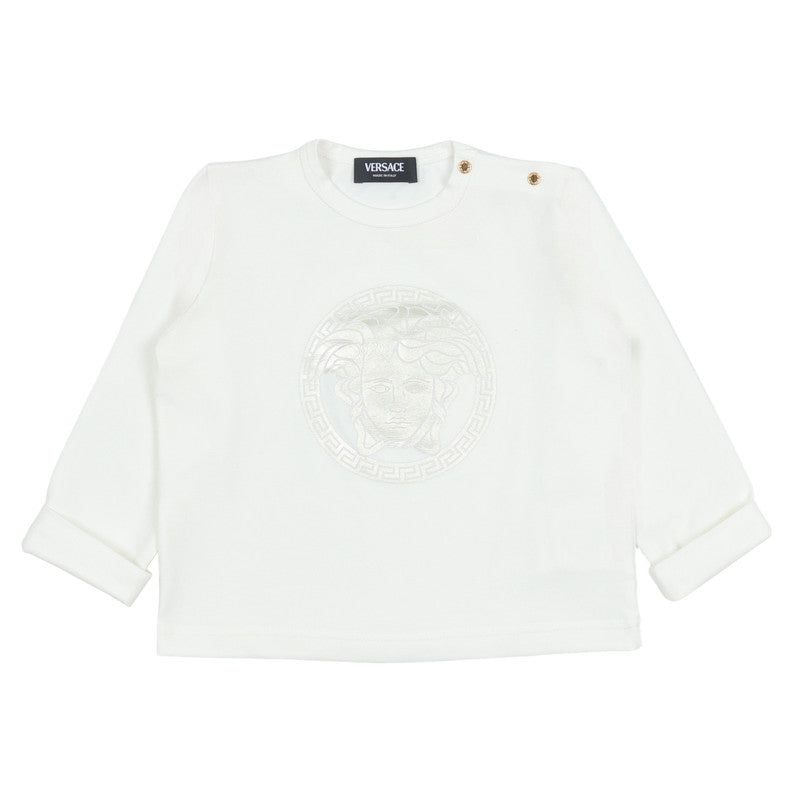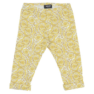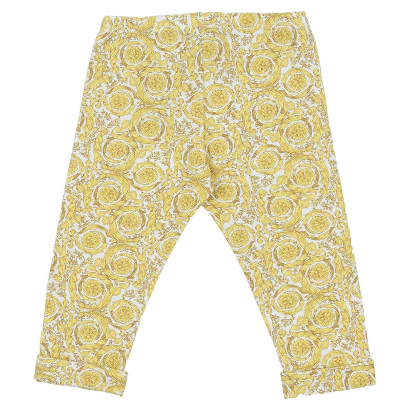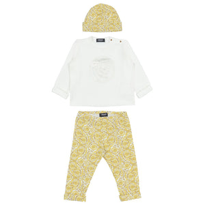 This baby cotton-jersey set includes a long-sleeved T-shirt with a metallic Medusa print at the chest and leggings featuring a Barocco Allover print, complete with a matching cap.