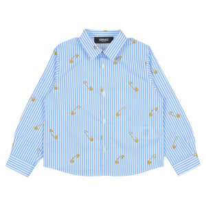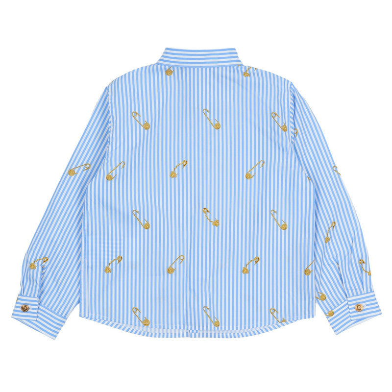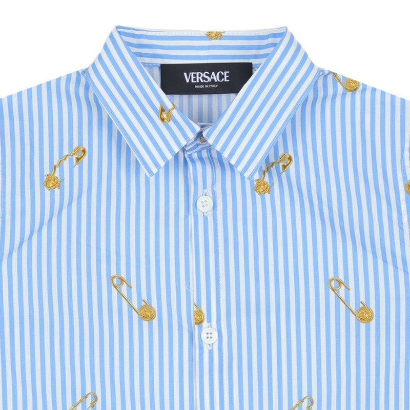 This cotton-poplin long-sleeved shirt features an all-over Pinstripe Pin print with an accent Medusa button.