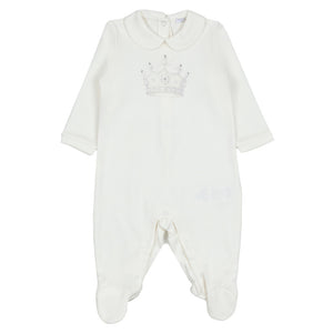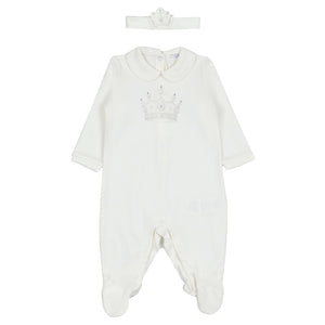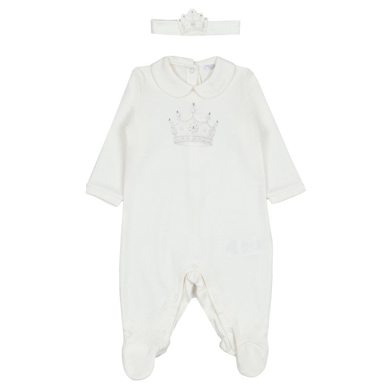 Monnalisa White Jumpsuit With Rhinestone Crown & Headband