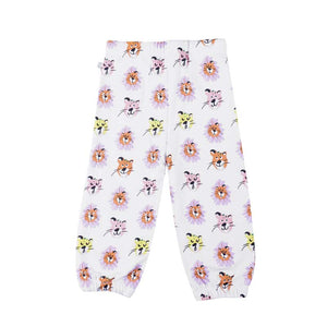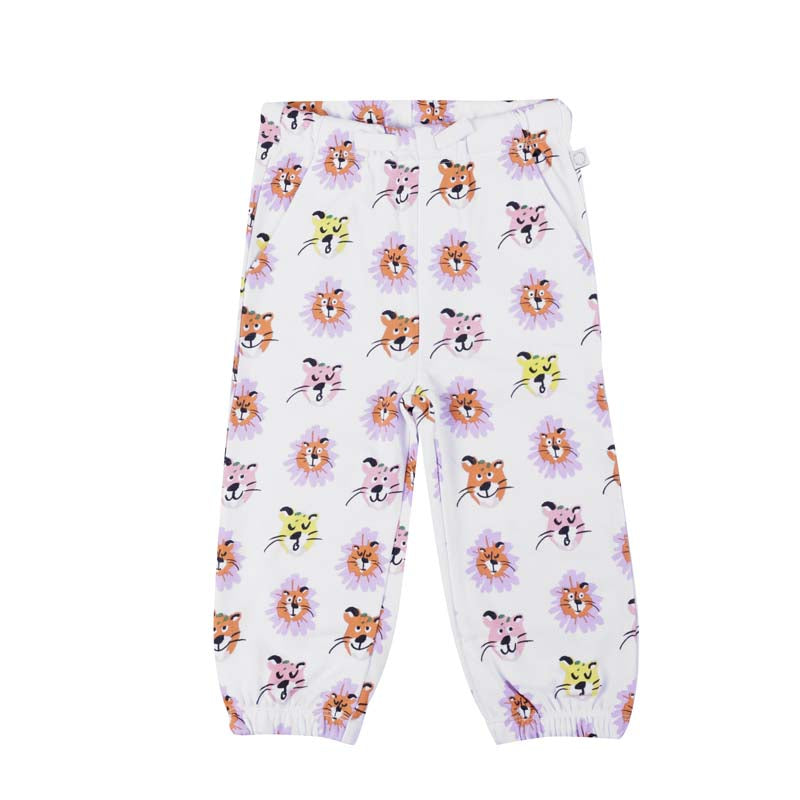 White all over tiger face print jogger for baby girl & boy by Stella McCartney with multicolor tiger face print.