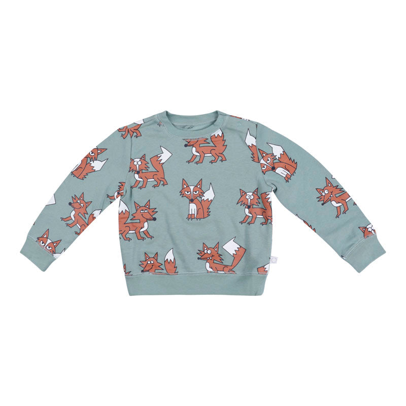 Cute green tracksuit for little boys from Stella McCartney Kids, patterned with a fun brown fox print. Made in soft organic cotton sweatshirt jersey, the set has a soft brushed feel inside for comfortable wear. The top has popper fastenings on one shoulder for ease and the cuffed joggers have a drawstring waist for an adjustable fit, and slanted pockets on the front. Both pieces have an embroidered logo tab on the side seam for a discreet designer finish.