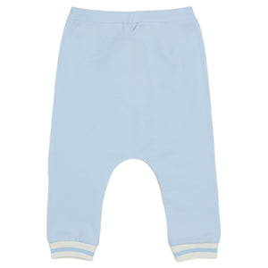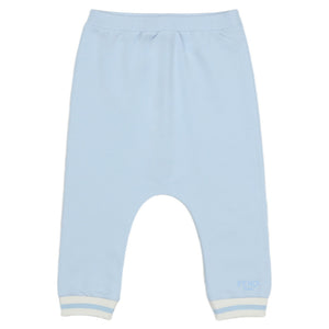 These soft light blue Fendi baby pants feature a comfortable dropped crotch and sporty striped cuffs. An everyday luxury essential with a subtle logo.