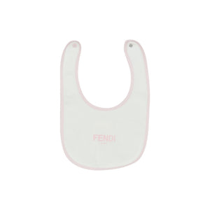 This pink babygrow set for girls by Fendi features a charming bear motif adorned with the signature FF logo. Including a babygrow, hat, and bib, each piece is made in soft cotton jersey, ensuring all-day comfort. The babygrow has a white Peter Pan collar and concealed front popper fastenings for easy wear. The matching hat has a turned-up brim and the bib has an absorbent towelling lining. All pieces are printed with the designer's logo for instant brand appeal.
