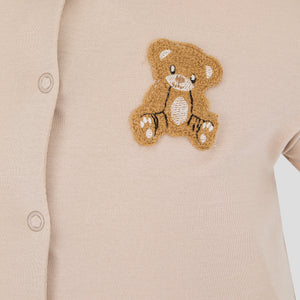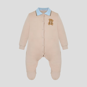 Dress your baby boy in the cozy charm of this Teddy Overall. Crafted for comfort and warmth, it offers gentle softness against delicate skin while allowing ease of movement. Its timeless design blends practicality with classic style, making it perfect for everyday wear or special outings.