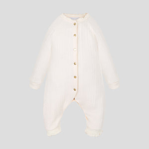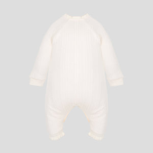 This soft knitted overall for babies combines gentle warmth with elegant comfort. Made from high-quality, breathable yarn, it wraps your little one in cozy softness while allowing freedom of movement. Its timeless design ensures a sophisticated look suitable for both relaxed days and special moments.