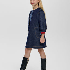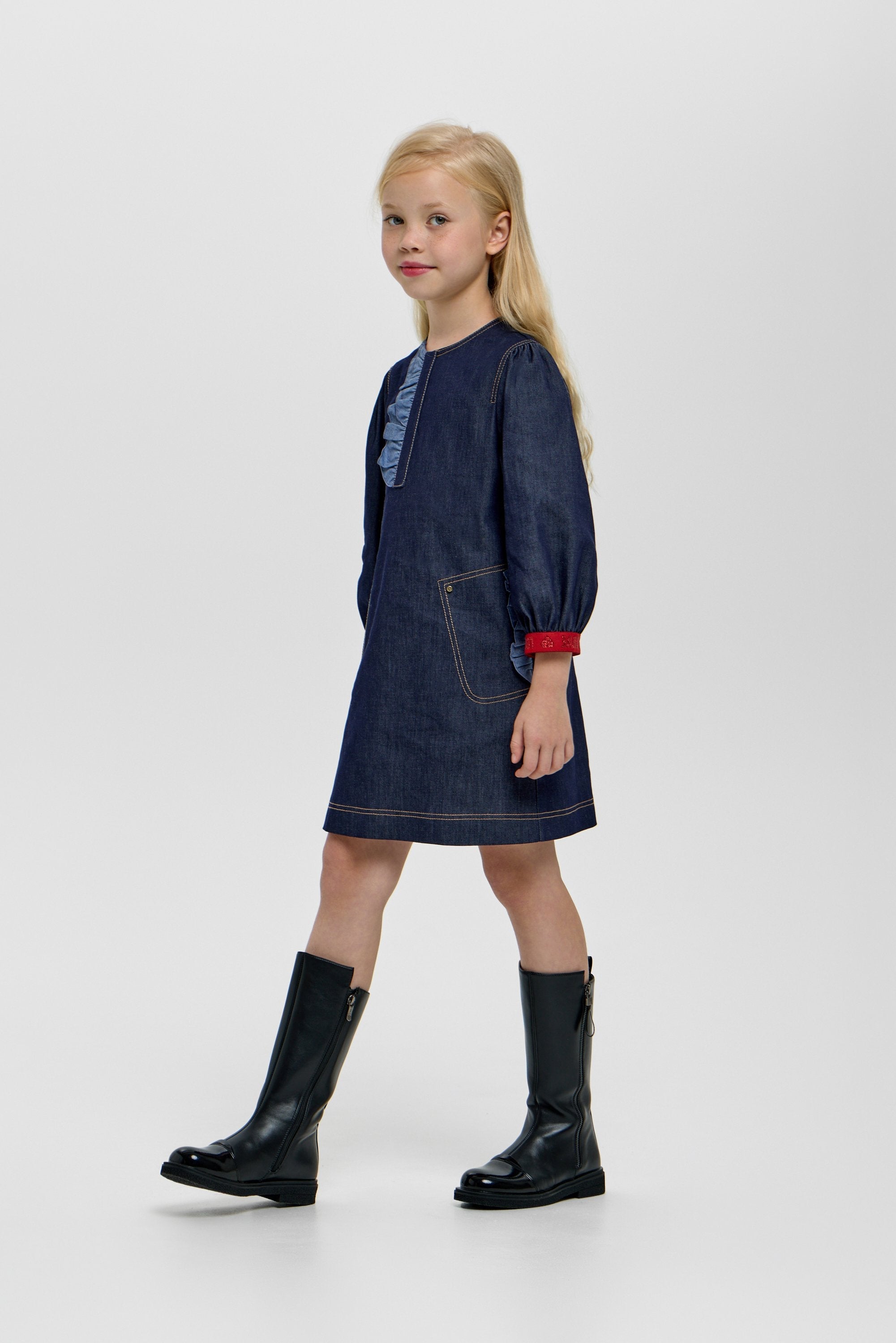 This timeless denim dress offers a refined and elegant style for young girls. Designed with quality fabric, it provides comfort and durability while maintaining a polished look. Ideal for both casual and special occasions, this dress effortlessly combines classic charm with modern sophistication.