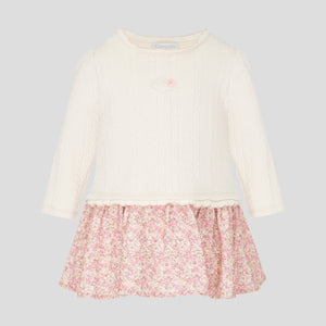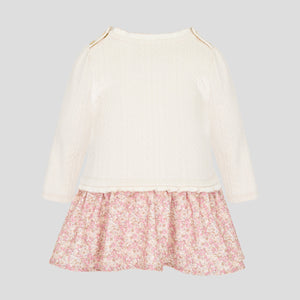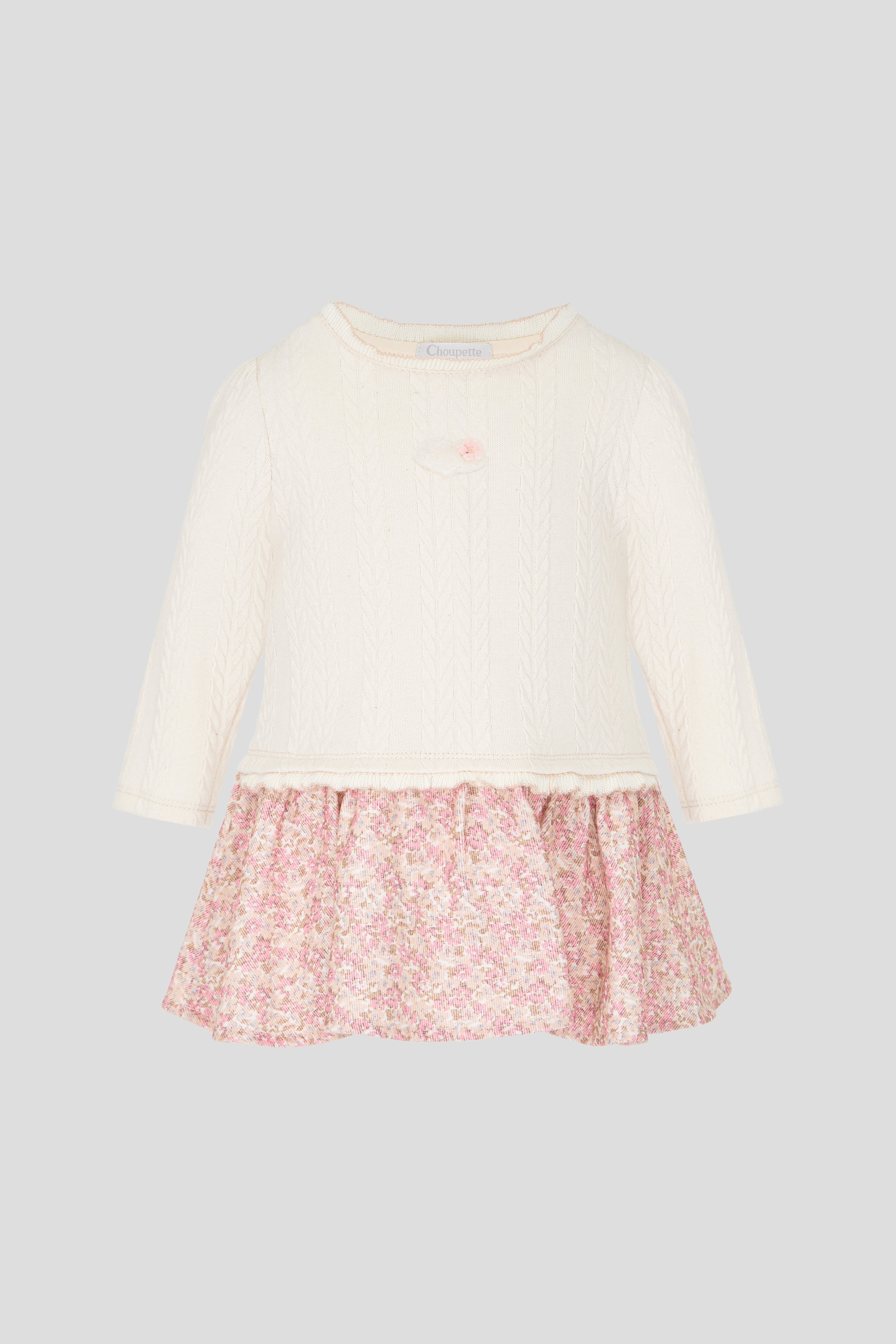 This combined dress for babies offers an elegant and comfortable outfit choice. Crafted with soft, gentle fabrics, it ensures your little one stays cozy throughout the day. Its refined design makes it perfect for special occasions as well as everyday wear, providing both style and ease in one unique piece.