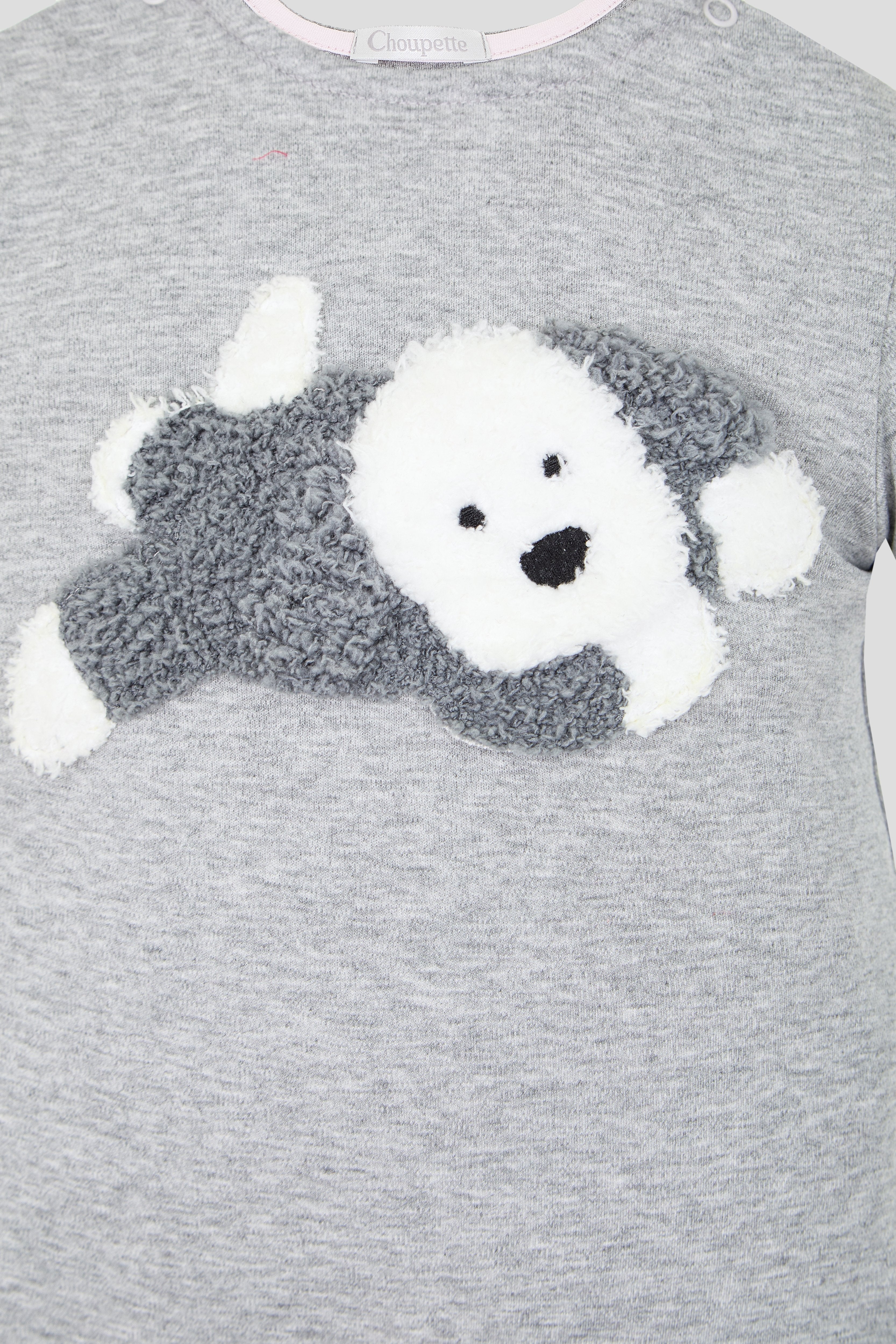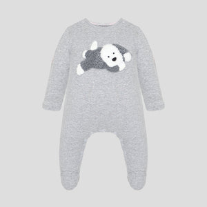 Refined cotton overall featuring a charming doggy applique, crafted exclusively for a baby.