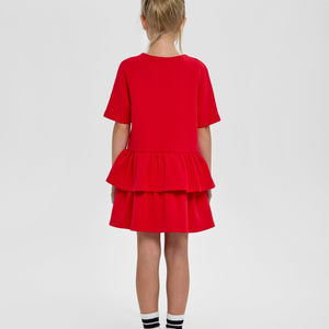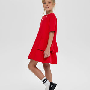 Crafted from soft jersey fabric, this elegant dress offers a refined silhouette with its stylish cut, perfectly suited for girls who appreciate subtle sophistication. Its comfortable fit ensures ease of movement, making it ideal for both casual and special occasions. A timeless addition to any wardrobe, blending modern design with effortless grace.