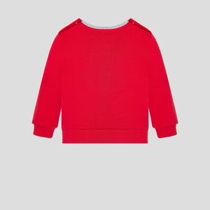 This red sweatshirt and pants set for baby boys offers a refined blend of comfort and style. Crafted from soft, cozy fabric, it ensures warmth and ease of movement, making it an ideal ensemble for both casual outings and relaxed days at home.