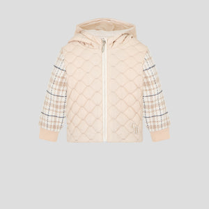 This warmed quilted combined jacket offers cozy protection for baby boys during cooler days. Crafted with soft, insulated material, it ensures warmth without compromising comfort. Its sleek design provides practical layering while maintaining a polished, sophisticated look perfect for both casual and formal outings.