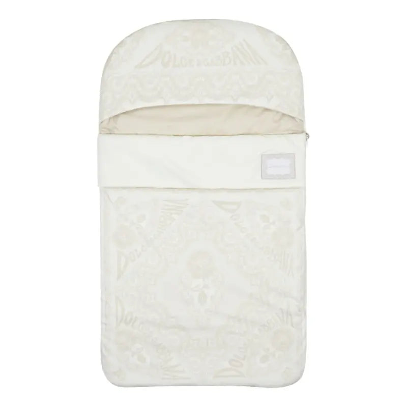 Lovely beige nest for baby boys and girls by luxury designer Dolce & Gabbana, ideal as a gift for a special new arrival. Made in beautifully soft cotton jersey with comfortable padding, this charming nursery accessory evokes the charm of 1960's Capri with it's intricate lace print. There is a tonal white zip, embossed with branding, to unfasten the nest and easily get baby in and out.