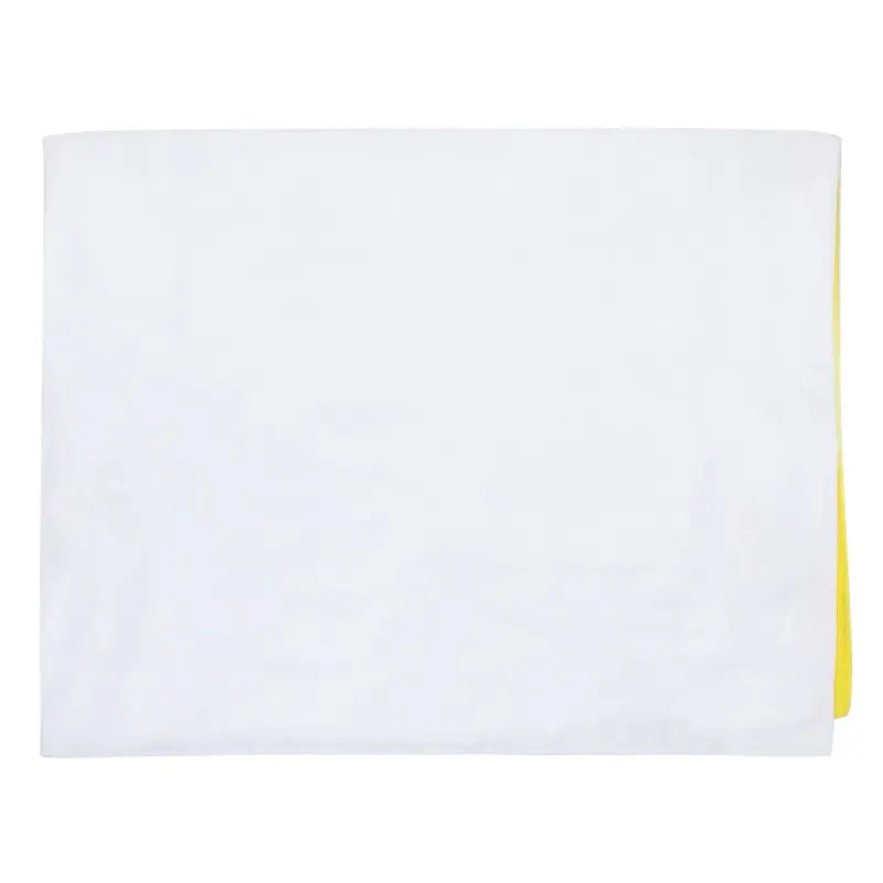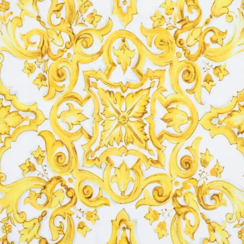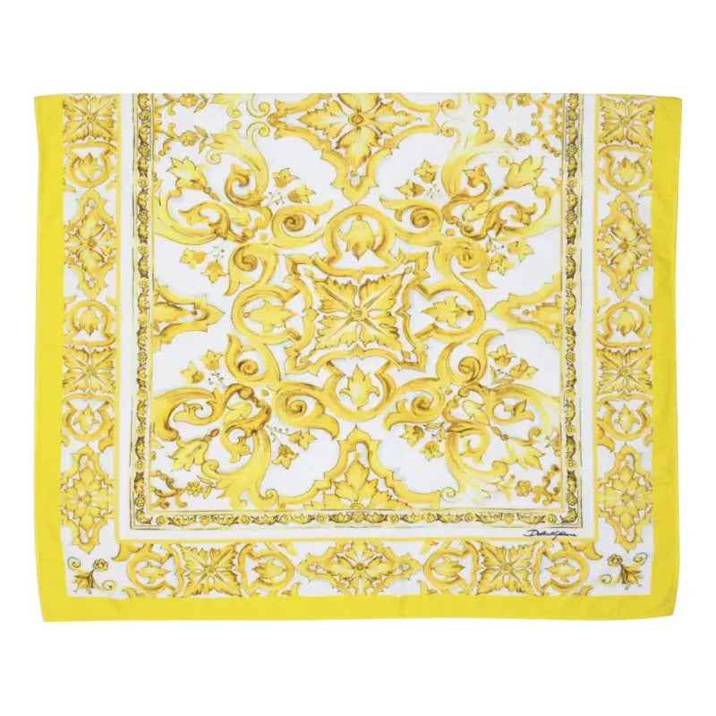 Vibrant yellow and white towel for boys and girls by luxury Italian label Dolce & Gabbana, made in soft and absorbent cotton towelling. Ideal for use at the beach or by the pool, it is patterned in the signature Majolica print, with a subtle black script logo adding an extra designer touch.