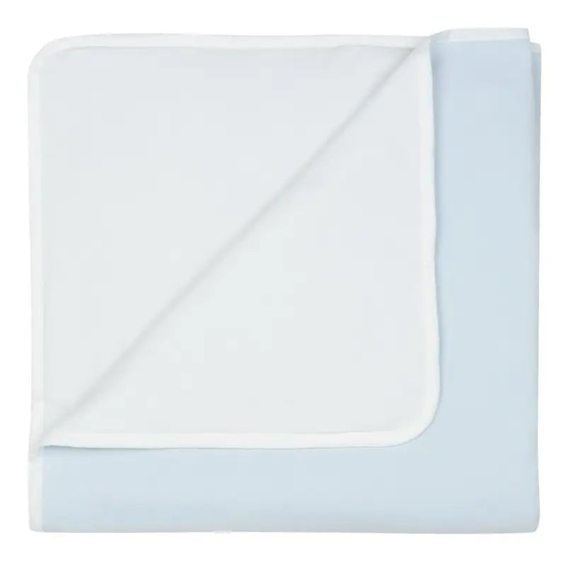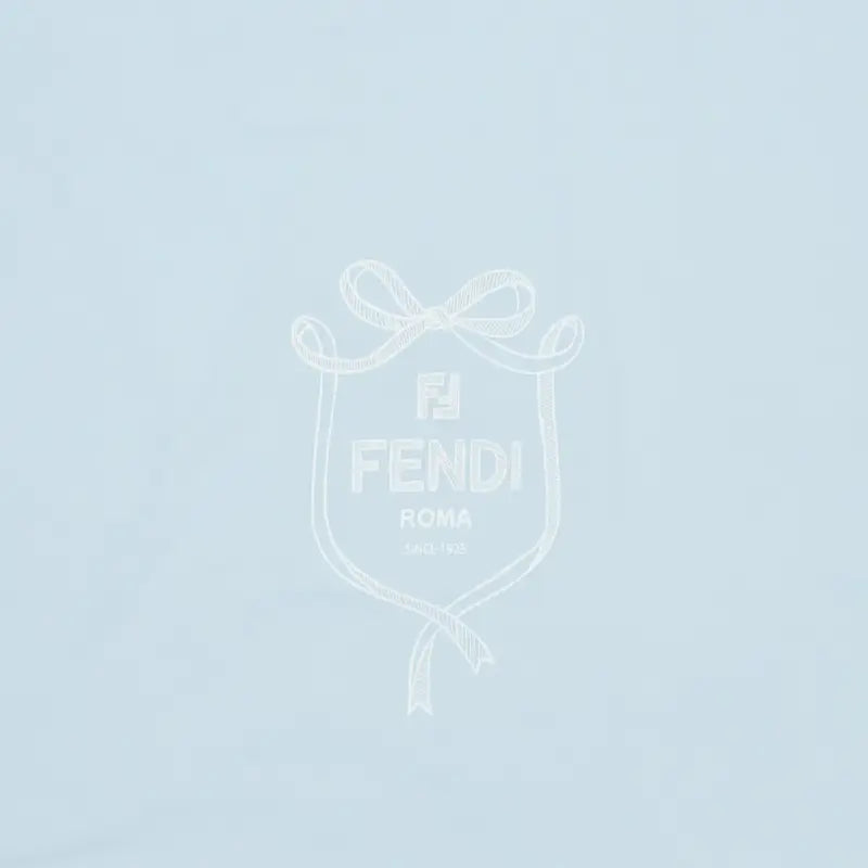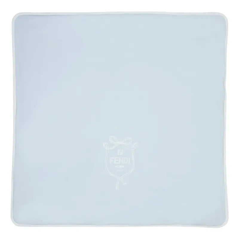 Fendi Blue jersey baby blanket with a chalk white banner-shaped Fendi logo on the front, chalk white back.