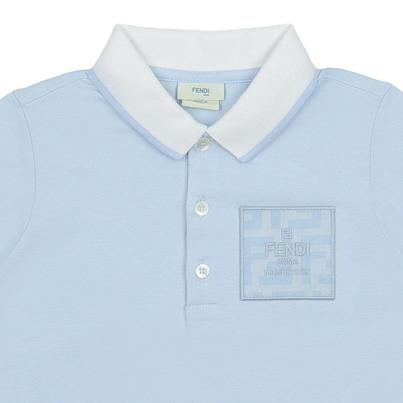 Wrap your bundle of joy in luxurious comfort with this distinctive Logo Polo from Fendi. With its cute colourway and contrasting collar this Polo shirt is punctuated by the iconic appliqued Fendi logo patch on the chest for a stamp of sophistication.