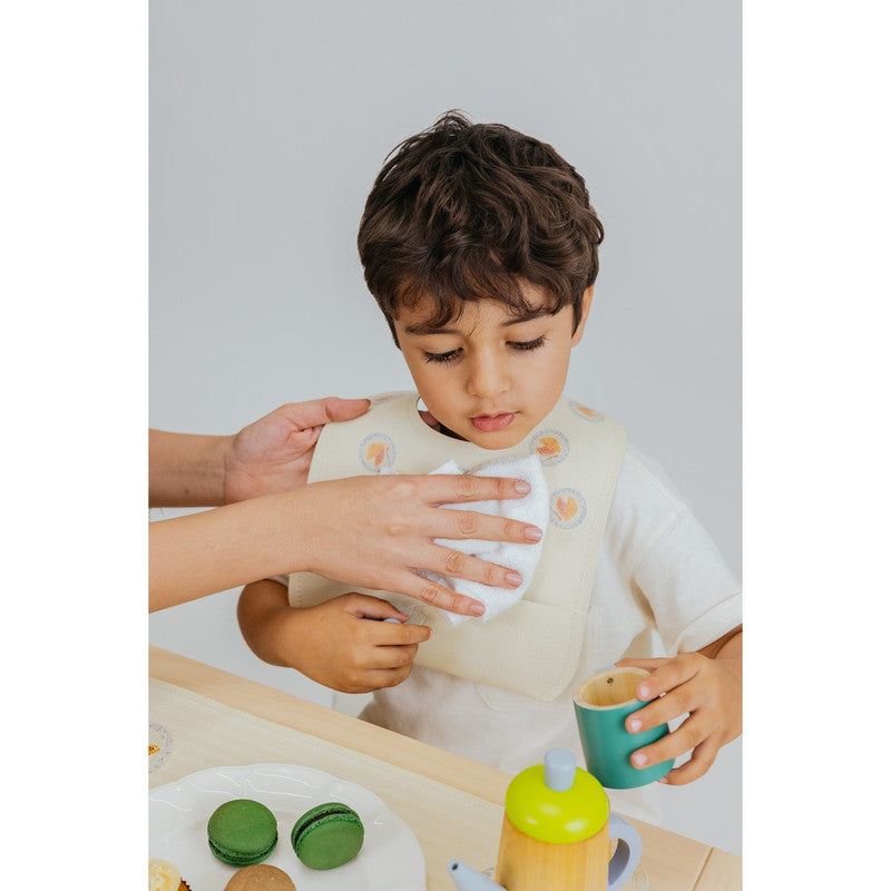 Ethically crafted with a premium feel. Sustainable composition: fruit skin, cork, wood, and cotton backing. Water and stain-resistant. PVC and lead-free for safety. Baby-safe certified and GOT certified. Easy to clean for daily meals or travel. Chic Paris-inspired illustrations encourage curiosity and playful learning.