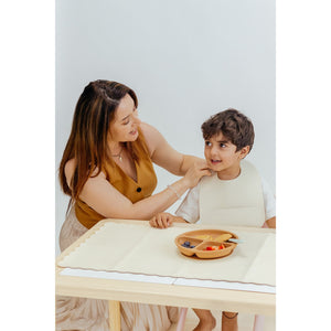 Ethically crafted with a premium feel. Sustainable composition: 67% fruit skin, 18% cork plus wood and cotton backing. Water and stain-resistant for lasting quality. PVC and lead-free for our child’s safety. Baby-safe certified, tested for delicate skin. GOT certified for organic excellence. Easy to clean—perfect for everyday use and travel. Interactive design sparks imagination, curiosity, and creativity. Elevate your parenting journey with JAPA’s luxurious bibs.