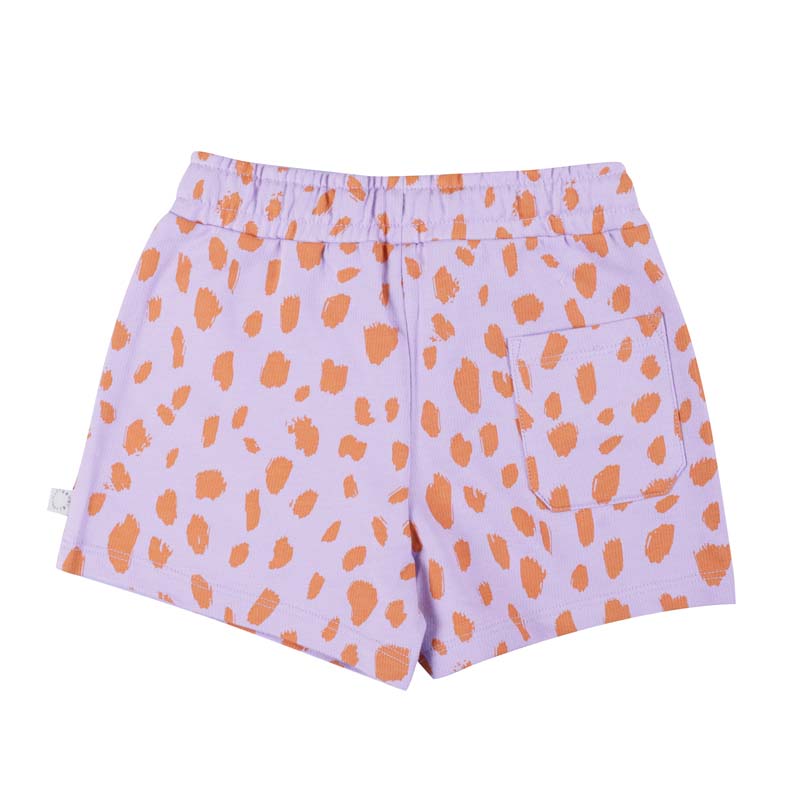Violet and orange cotton stretch shorts from Stella McCartney featuring elasticated waistband, spot print and logo patch to the side.