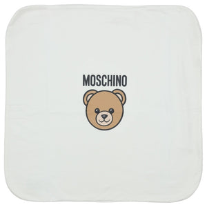 Wrap Your Little One In Comfort And Style With This Moschino Kids Blanket, Featuring The Brand'S Iconic Teddy Bear Print. Crafted From Soft Cotton Material, It Comes In A Warm Off White Tone And A Classic Square Shape, Offering A Gentle Texture That'S Perfect For Snuggles And Naps.
