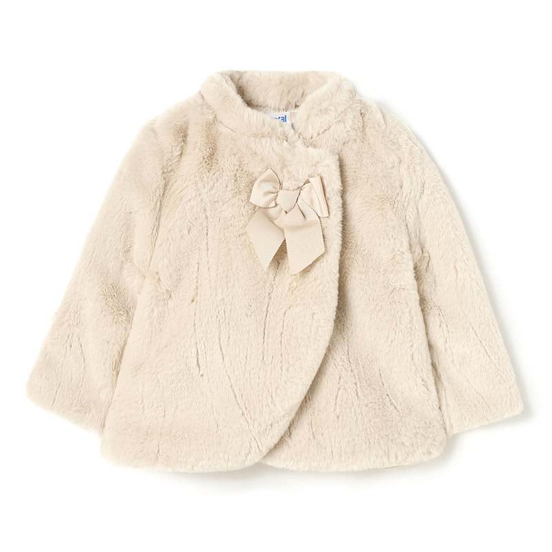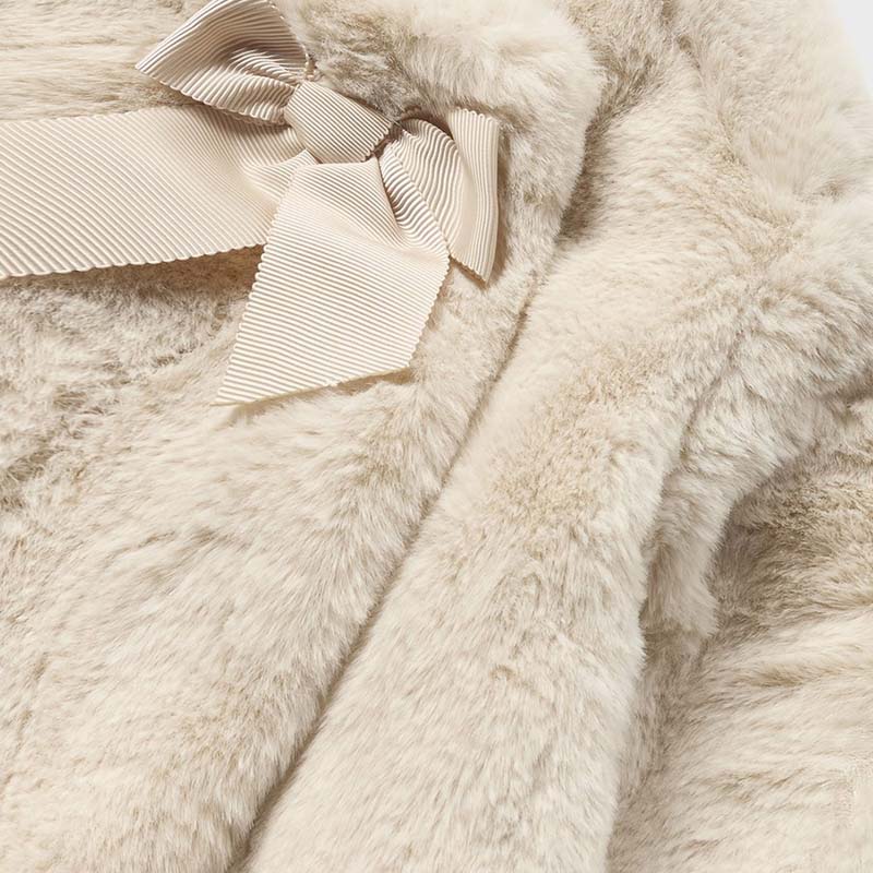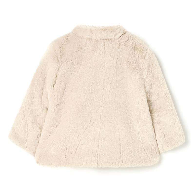 Long sleeved coat for baby. Fastening with hidden clasps which allow the item to be put on easily. Soft and smooth outer faux fur fabric. 100% Polyester