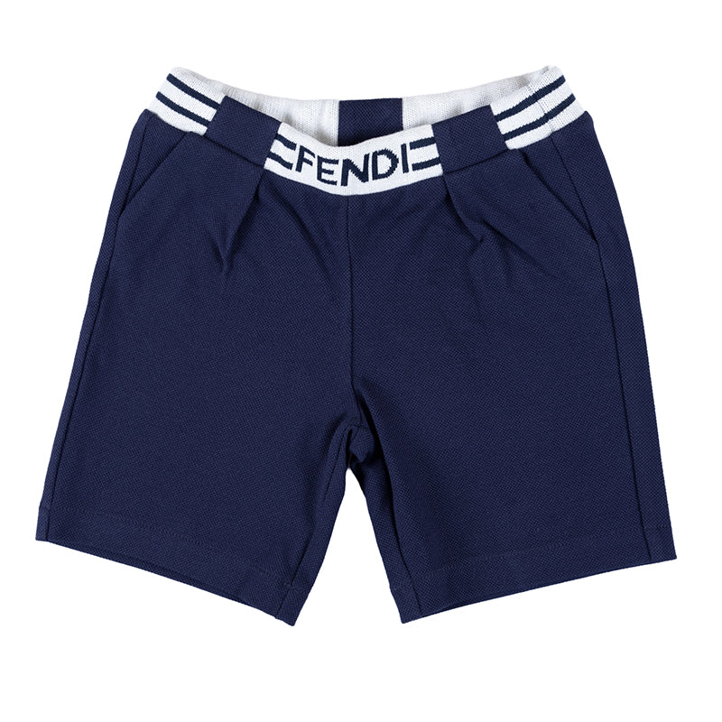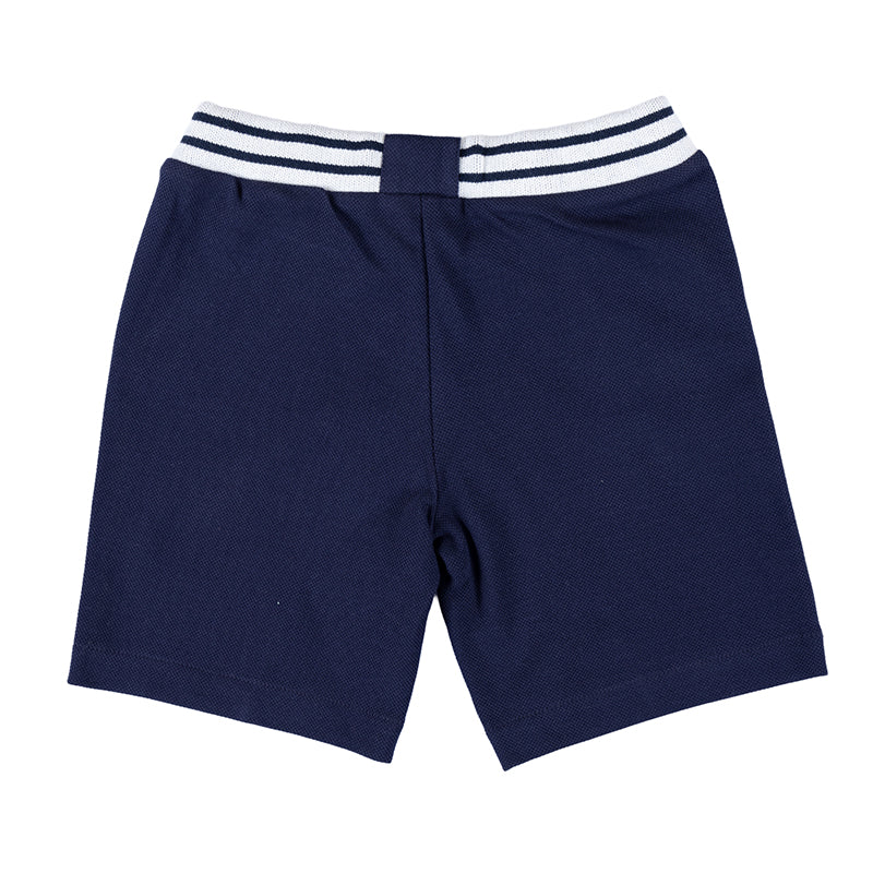 Baby shorts in Navy color with Brand name print in front