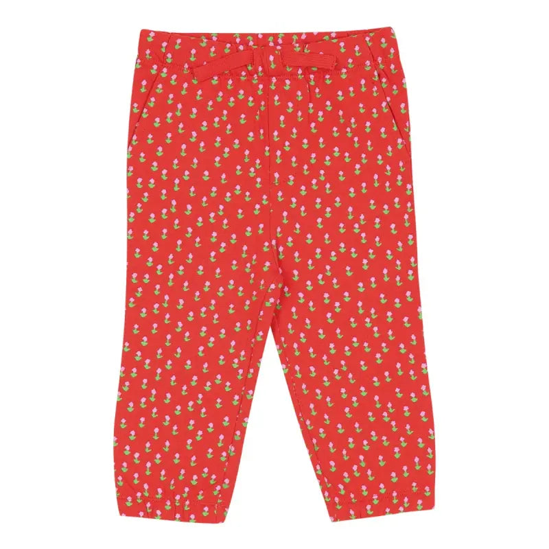 Stella McCartney joggers with an elasticated waist and drawstring with an all-over floral printed pattern in green and pink.