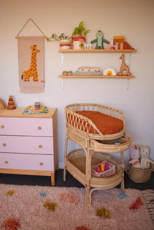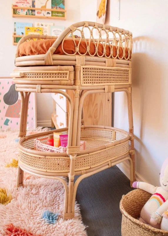 An edward changing table is a piece of furniture designed for changing a baby's diaper. It is made from rattan material, which is known for its durability and strength. Rattan is a natural material made from weaving together long and thin stems of palm plants. The changing table usually comes with a flat surface on top where a changing pad can be placed for the baby to lie on.