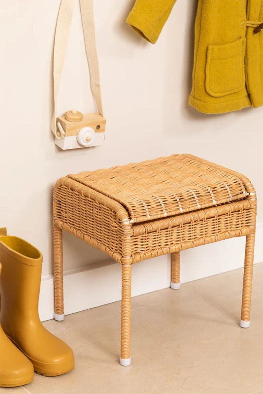 The Stool with Storage in Rattan Yei Kids is a beautifully crafted piece of furniture designed specifically for children. It is made from high-quality rattan material that is durable and long-lasting. The stool is designed to be lightweight and easy to move around, making it perfect for use in a child's bedroom, playroom, or any other space where children like to spend their time.