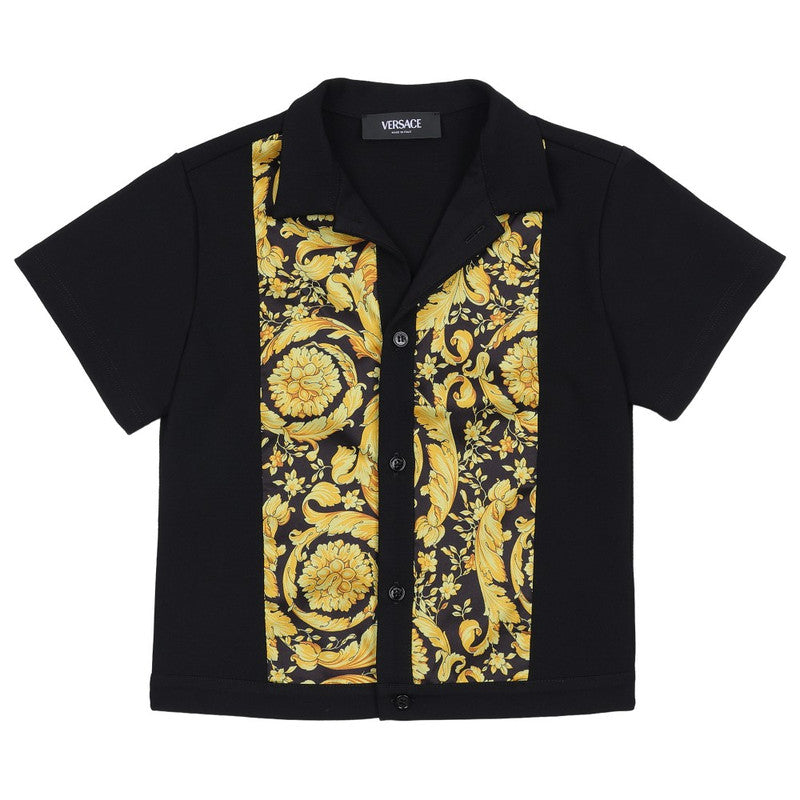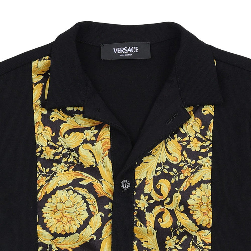 A compact Milano-stitch jersey shirt featuring front twill Barocco printed panels.