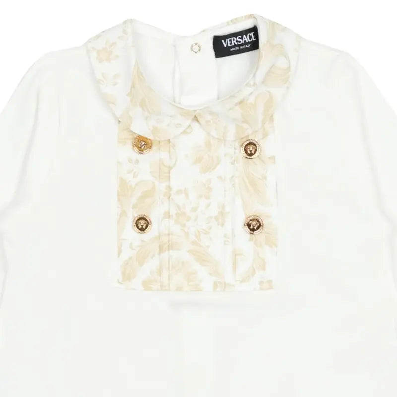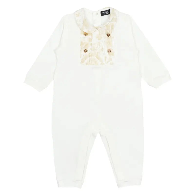 A cozy cotton-jersey sleepsuit for the littles ones featuring a delicate Barocco Kids print panel and peter-pan collar, accented by Medusa hardware.