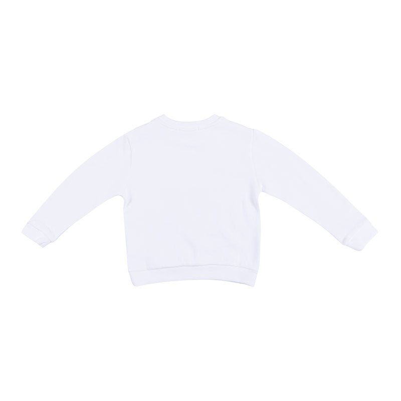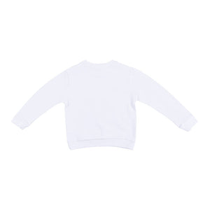 Girls white sweatshirt by Stella McCartney Kids, made in organic cotton. The front is printed with a colourful rainbow logo motif and has popper fastenings on one shoulder for easy dressing and changing.