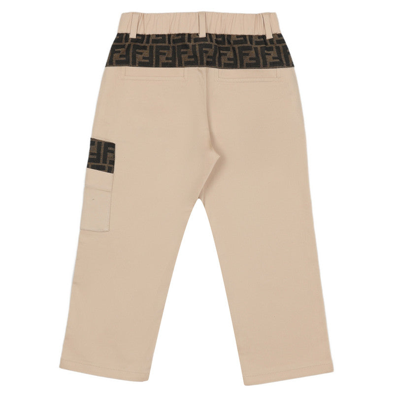Add a touch of sophistication to his wardrobe with these beige trousers for boys by luxury Italian label Fendi. Made in soft cotton twill, they have four pocket styling and a partly elasticated waist for a great fit. Adding instant designer appeal, the front and back are trimmed with the distinctive FF logo in contrasting brown.