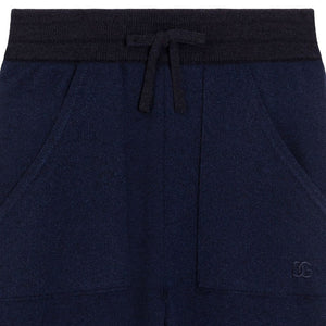 These navy blue joggers by Italian label Dolce & Gabbana, combine casual comfort with a touch of luxury. They are styled with slanted front pockets and a drawstring waist for an adjustable fit. The brand's iconic DG logo is embroidered on the front for a subtle designer touch.