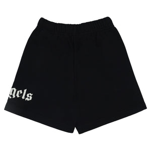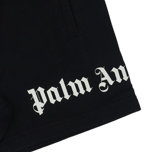Different logo positions and sizes add a current flair to staples. Black sweat pants with elastic and drawstring waistband and with Over logo printed in white on the bottom of the left leg, front and back.