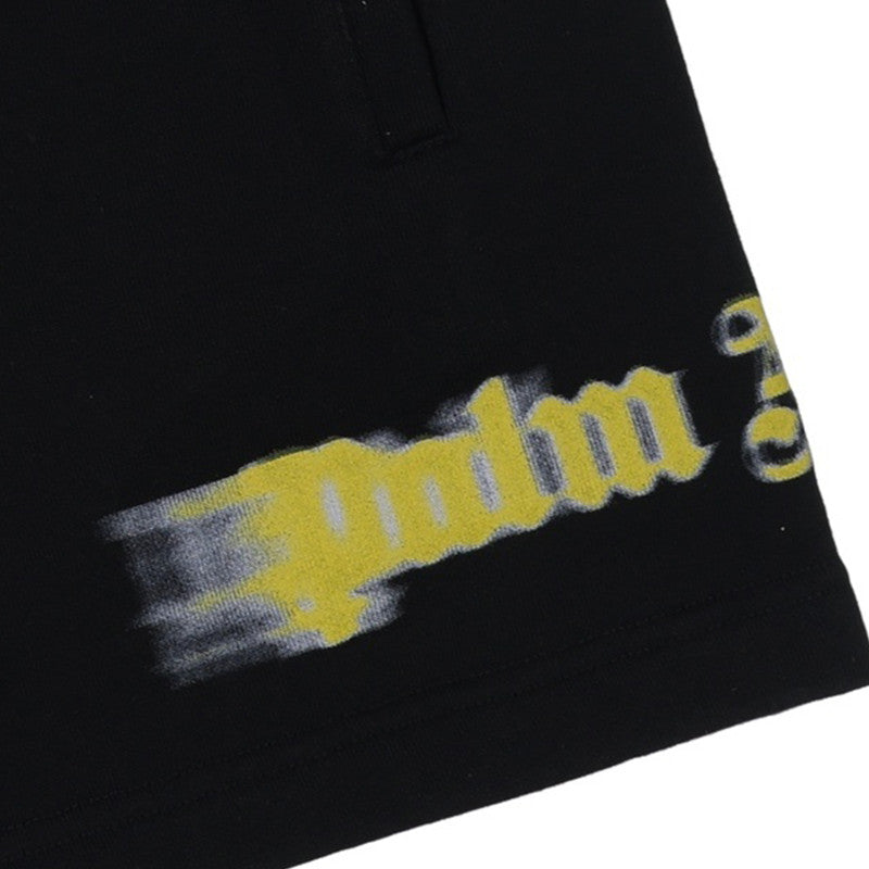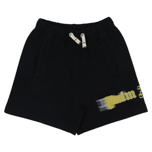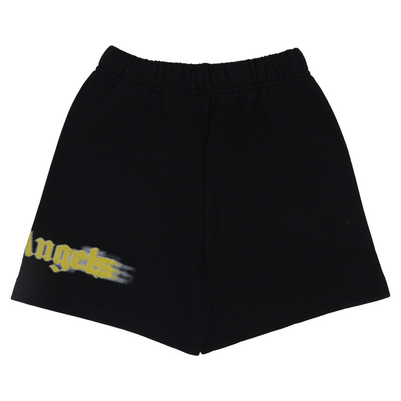 These cool black cotton shorts are by Palm Angels, with the brand's eye-catching blurred logo on one leg in yellow. Made in comfortable jersey with a soft fleecy lining, they have a drawstring waist for a great fit and useful front pockets.