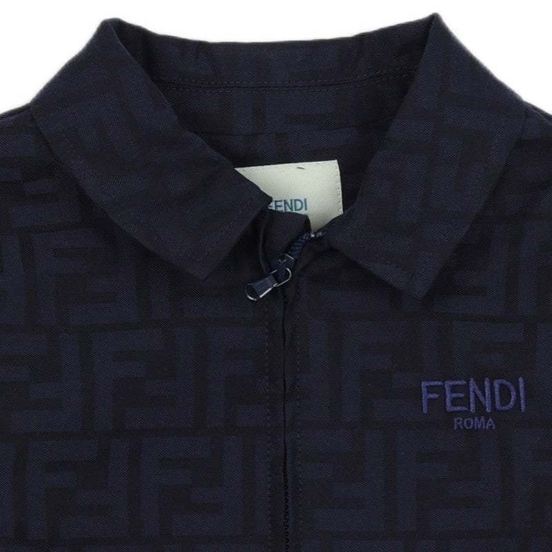 The essential Fendi jacket for cool days. It’s dark navy blue, crafted with the subtle FF monogram, a zip front, and comfortable elastic hem.