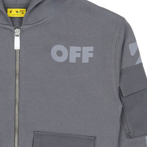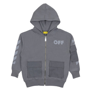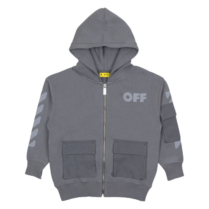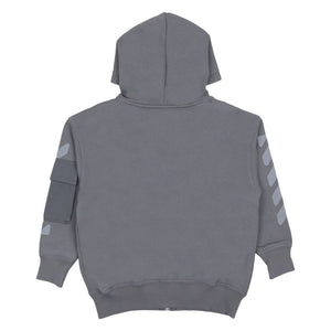 Garment dyed hoodie with cargo features, showcasing signature stripe detailing on sleeves.