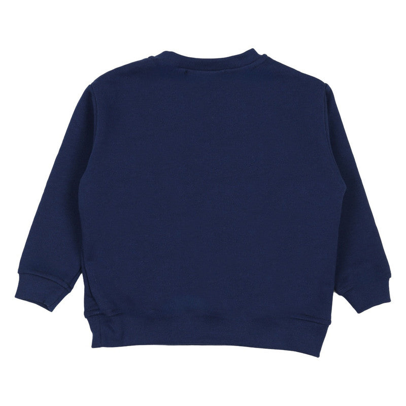 Score style points with this Mousse navy blue sweatshirt! It features a playful graphic of two iconic characters playing soccer, perfect for little champions on and off the field.