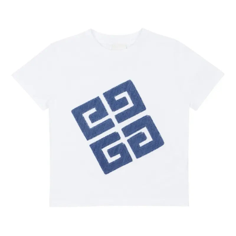 White Short-sleeved Crew neck t-shirt in cotton. 4G denim emblem embroidered on the front having a classic fit.
