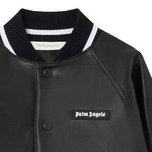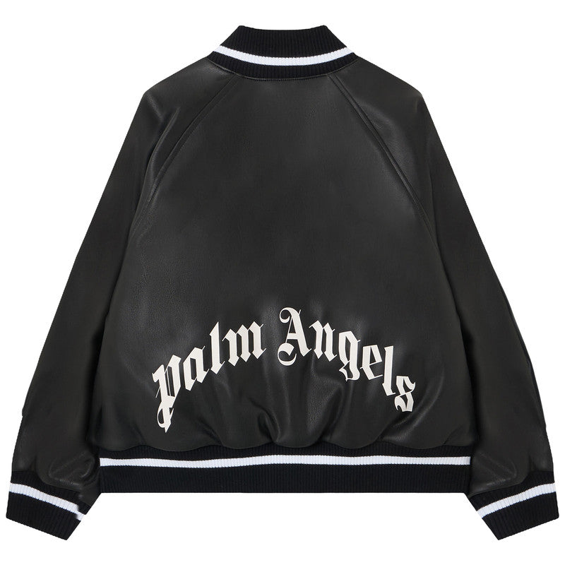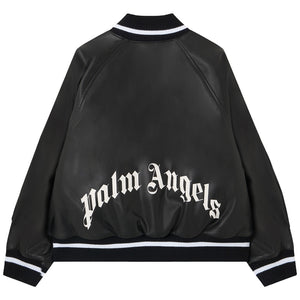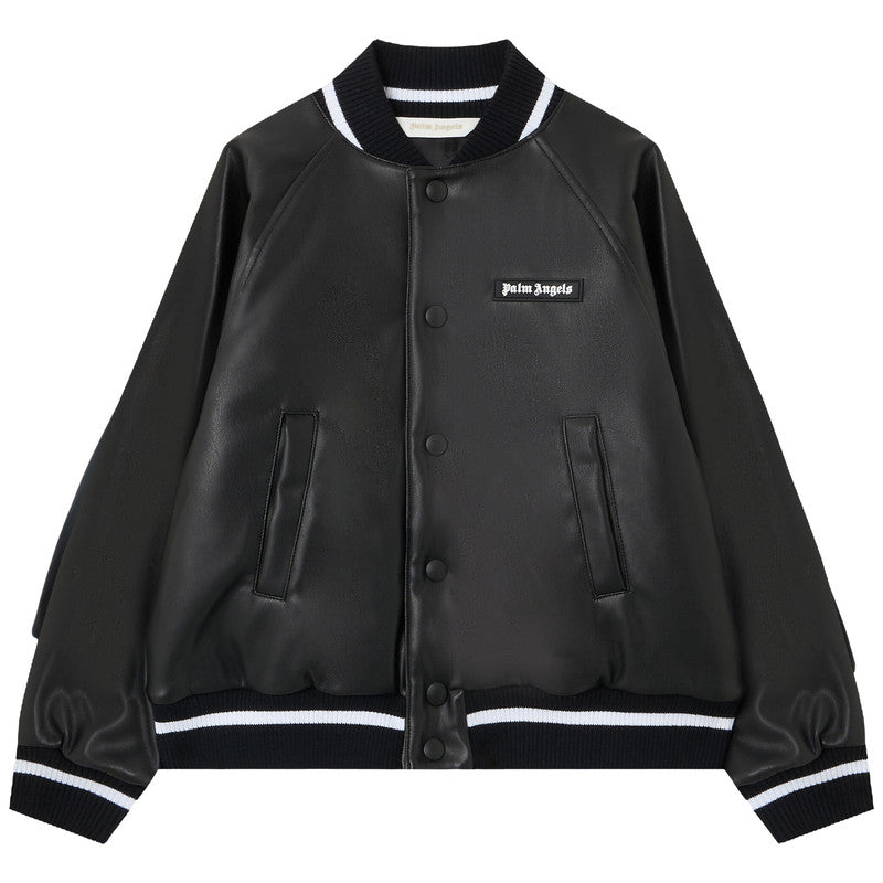 This coated varsity jacket merges skate culture with a refined edge, featuring a structured silhouette and distinctive logo details.