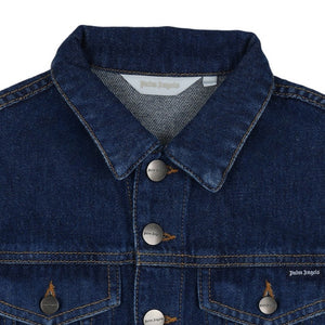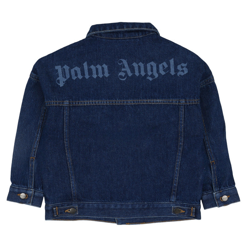 Structured denim jacket with iconic logo detailing, featuring a timeless silhouette and buttoned front closure.